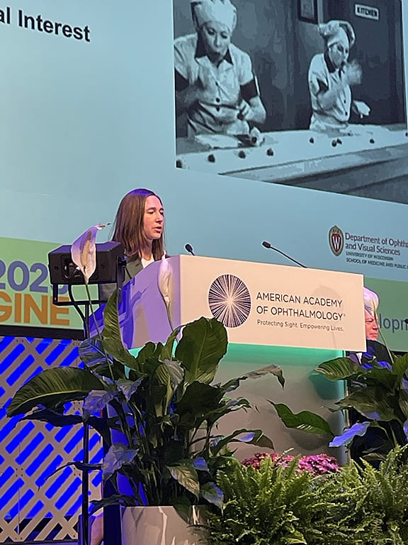 During her glaucoma subspecialty day presentation, “New Developments From 2025 That I Apply to Clinical Practice,” Dr. Momont, an associate professor in the Department of Ophthalmology and Visual Sciences at the University of Wisconsin School of Medicine and Public Health and a glaucoma specialist and cataract surgeon at UW Health, said her approach has been shaped by both innovation and necessity. “The things I’ve adopted this year are meant to help with effective and efficient treatments for the patients I see in the clinic.” Her talk focused on three areas: early interventions, technology in clinical practice, and collaboration to address workforce strain.