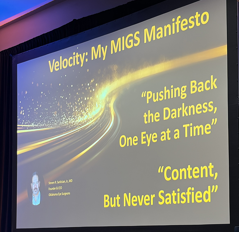 My MIGS manifesto is really about urgency. I’ve always had this sense that we’re in a fight, and the enemy wants to rob people of their sight. When you get into warrior mode, it increases the sense of urgency. That means working with industry, developing better tools, and recognizing that surgery is how we definitively address the disease. Medical therapy can delay things, but surgery is how we win. That’s why I frame it as a manifesto, because it’s about acting with urgency and embracing interventional glaucoma.