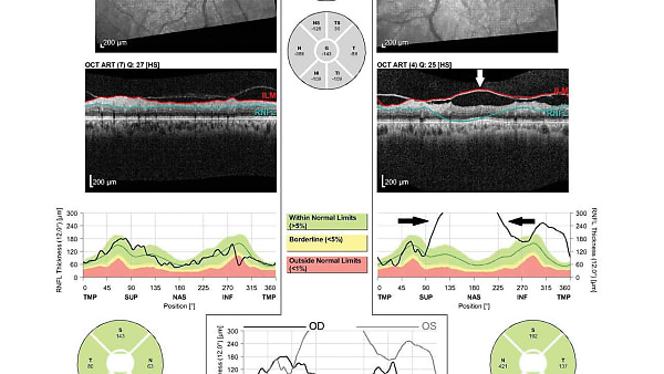 When ocular comorbidities affect the RNFL, discerning true glaucoma progression requires careful interpretation and serial imaging.