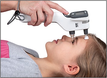 Demonstration of the IC200 tonometer in use with a pediatric patient in supine position. Image courtesy of Icare