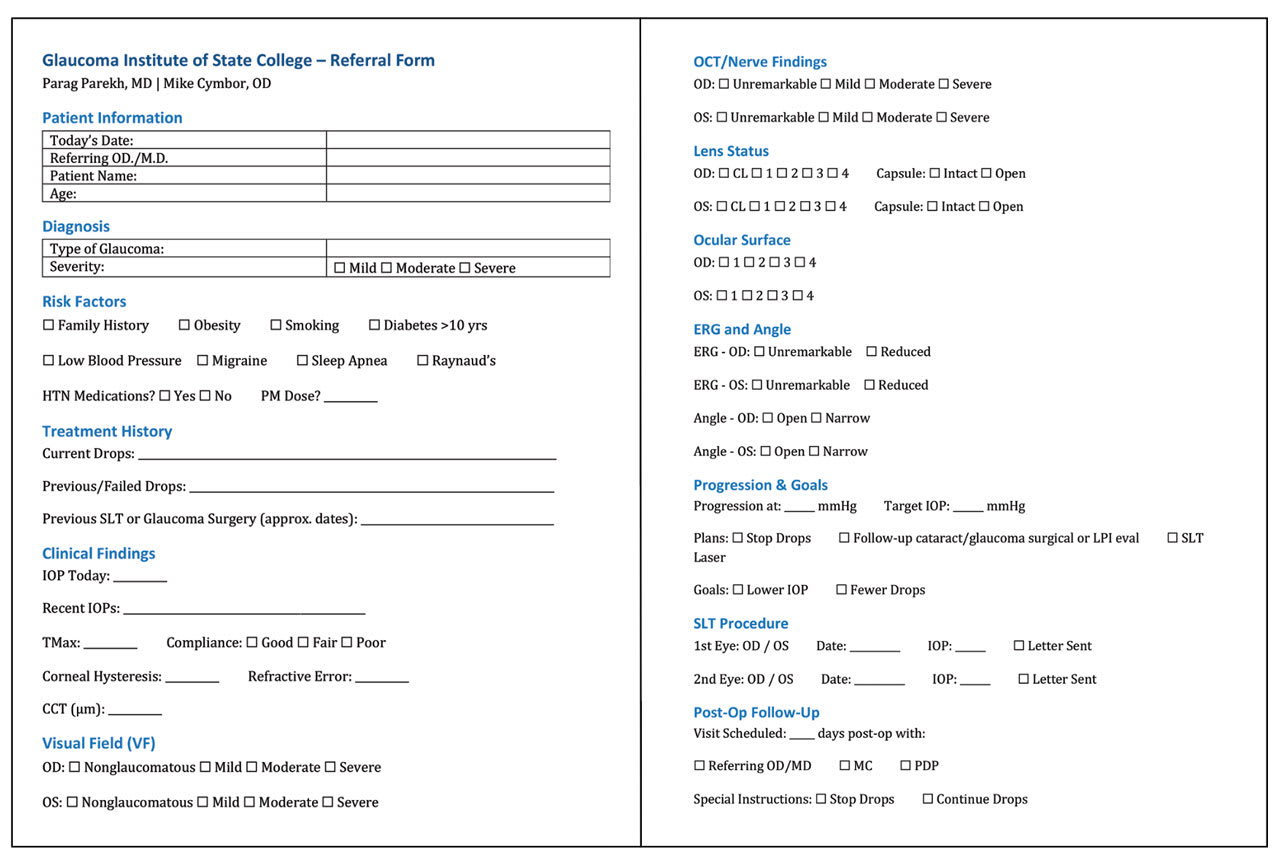 Figure 3. Referral form used by the authors at the Glaucoma Institute of State College.