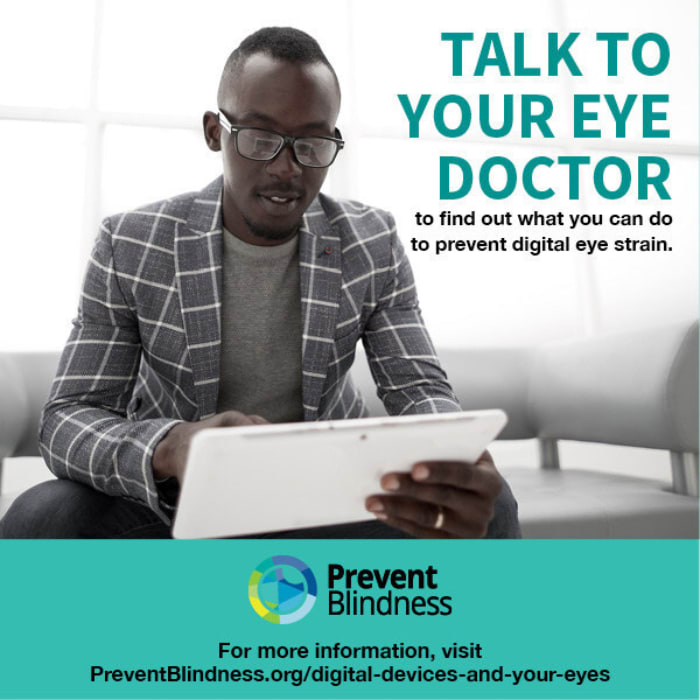 “Digital Eye Strain,” also referred to as “Computer Vision Syndrome,” is a group of symptoms experienced when using computers or other digital devices for long periods of time, according to the Cleveland Clinic. Symptoms may include dry eyes and/or irritated eyes, blurred or double vision, tearing or watery eyes, and headache.